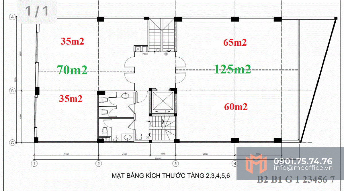 Mặt bằng cao ốc văn phòng cho thuê Sabay 11A Hồng Hà