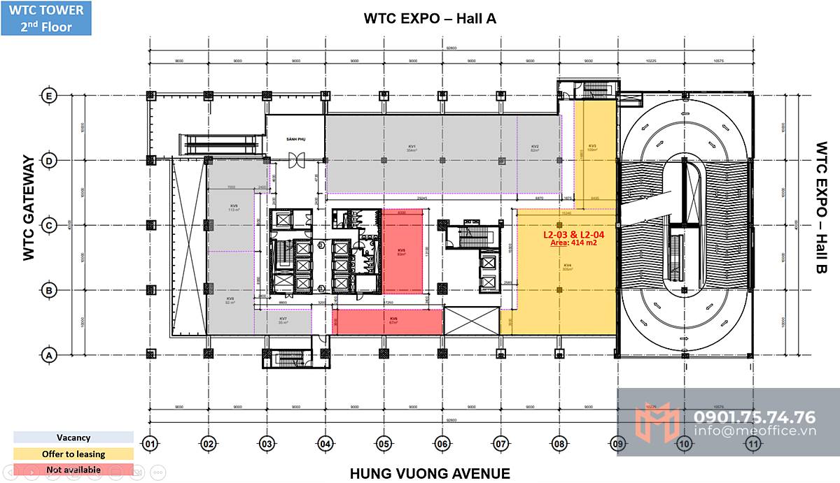Trả lời: Bạn có thể liên hệ BQL WTC Tower qua hotline ☎: 0901.75.74.76 để cập nhật diện tích trống, cũng như được hỗ trợ về các vấn đề thuê văn phòng.